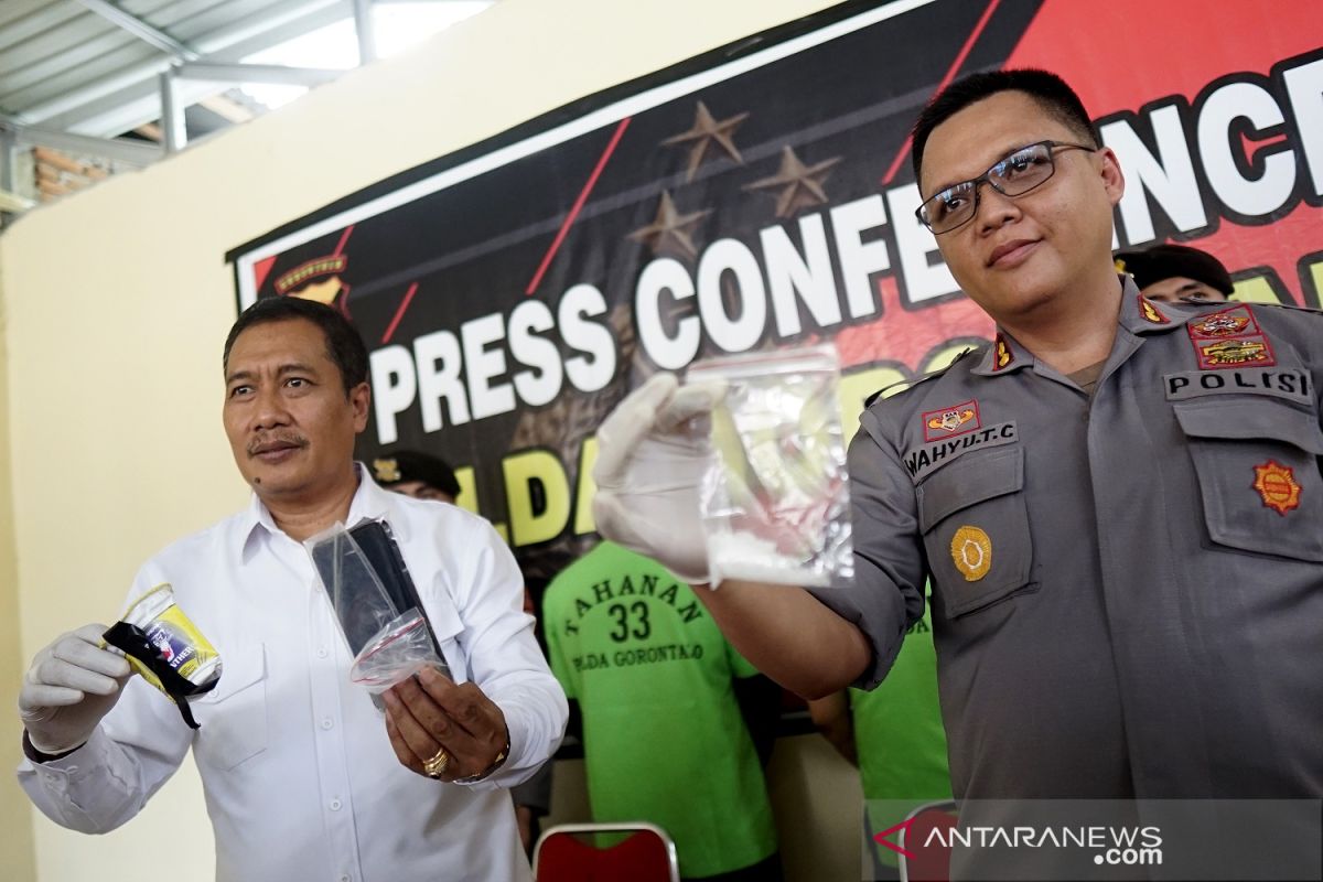 * Peralatan seperti timbangan digital, sedotan, bong, plastik klip, dan telepon genggam yang diduga digunakan untuk mengemas, mengonsumsi, dan berkomunikasi dalam transaksi narkotika.