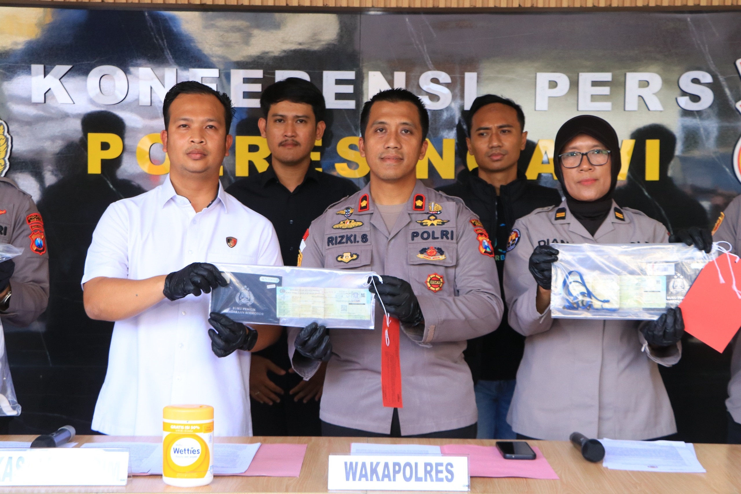 Selain itu, pelaku juga mengaku telah membuang plat nomor kendaraan di Jembatan Klitik, Kecamatan Geneng, Kabupaten Ngawi. Saat petugas melakukan pengembangan dan pengecekan lokasi pembuangan barang bukti, pelaku sempat melakukan perlawanan dan berusaha melarikan diri.